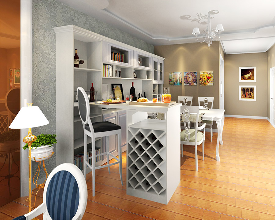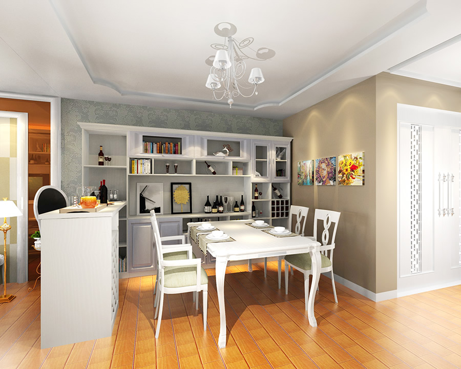 既有法式的浪漫,又有現(xiàn)代的時尚,餐桌和餐椅均為米白色,其線條也十分流暢自然,在制作工藝上極其考究,在白色吊燈的點綴下更顯典雅風范。